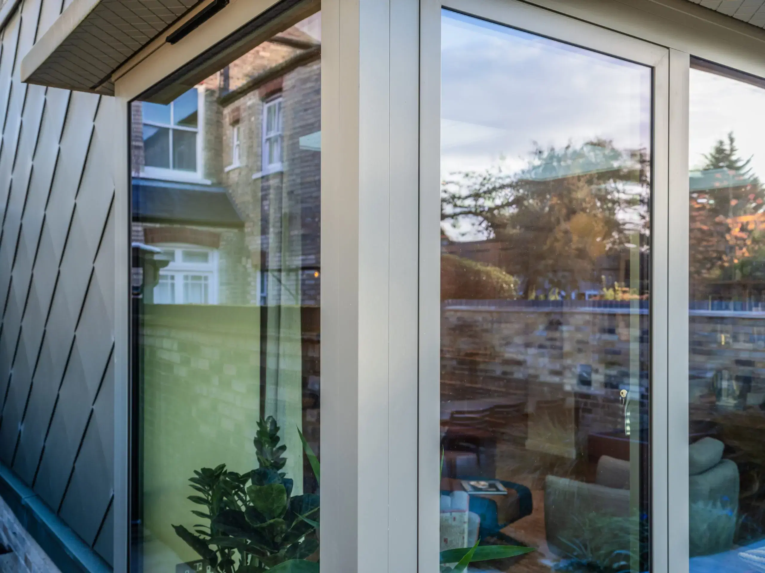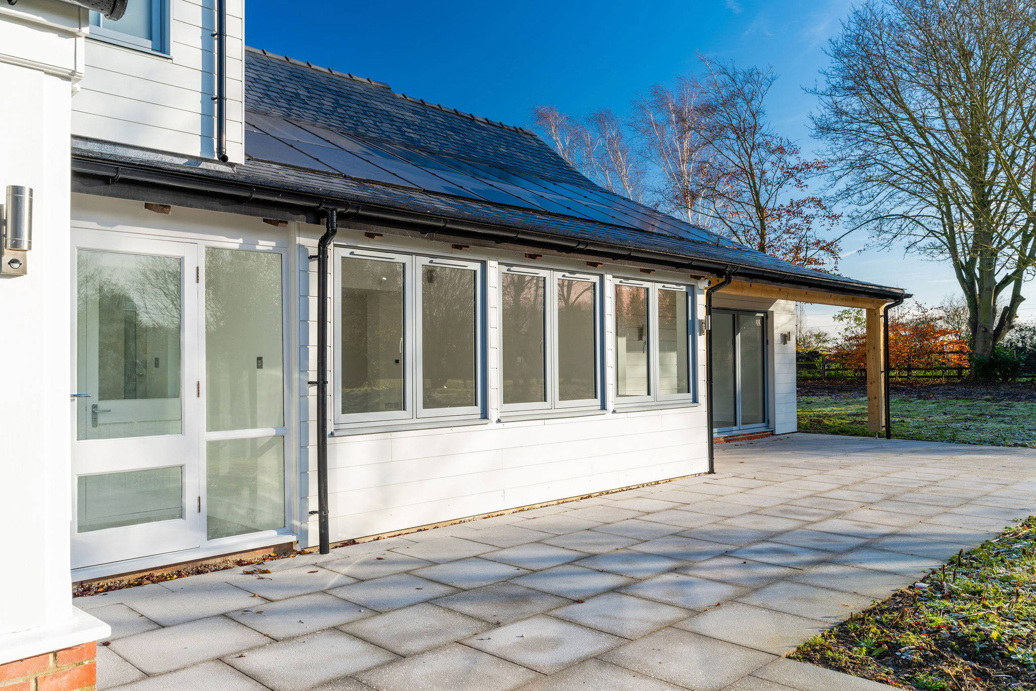 In addition, uPVC flush casement windows in a dual colour, RAL 9016 white on the inside and outside grained RAL 7001 were supplied for the remainder of the property.