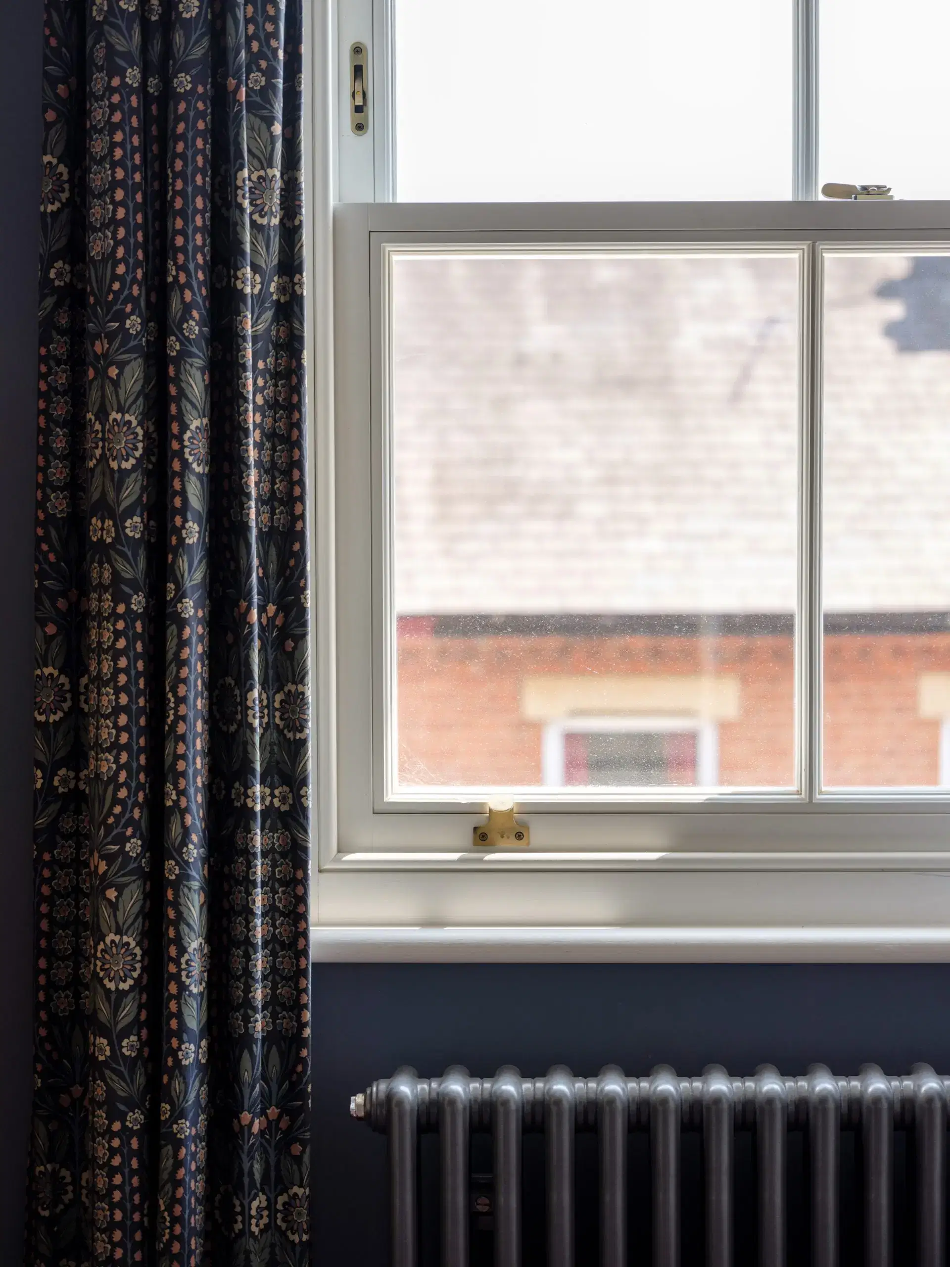 The sliding door on the rear courtyard elevation is timber and has a dual colour finish (outside Little Greene French Grey Dark 163 and inside Little Greene Linen Wash 33) with two panels (1 fixed and 1 sliding. For reference of scale the width of the door was 3347mm, height 2090mm.